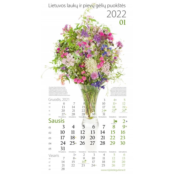 2022 m. Sieninis kalendorius " Lietuvos laukų ir pievų gėlių puokštės"